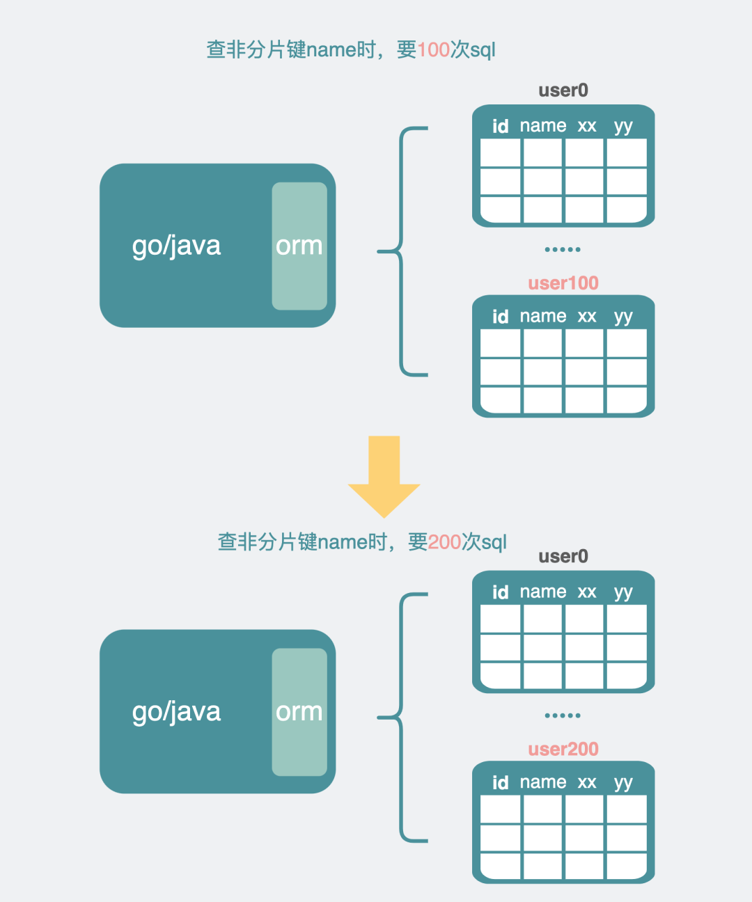 复制select * from user where name = "小白";1.由于name并不是分片键,我们没法定位到具体要到哪个分表上去执行sql。