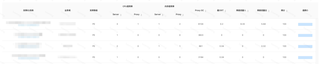 实例综合得分排名:运维平台通过分析所有实例关键监控指标前一天的峰值,再根据各项指标的权重,每天自动计算所有实例的得分,在巡检信息页面进行展示,通过得分排序即可快速发现风险实例。
