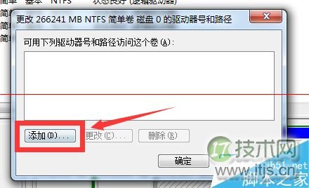 8、看到这个界面后选择【添加】,选择我们前面记住的盘符,再点击【确定】