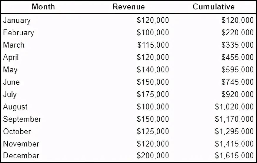 复制SELECT Month , Revenue , SUM(Revenue) OVER (ORDER BY Month) AS Cumulative FROM monthly_revenue1.2.3.4.