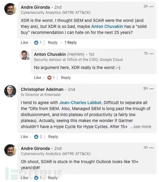 此次XDR登顶并未让众人对“XDR将成为未来安全运营的关键技术”的观点趋于一致,反而进一步激化了彼此之间的分歧,如同粉丝和路人对于流量明星的态度一样,讨论者对于XDR的态度可是泾渭分明:赞成方认为XDR必将引领全新的安全运营体系,IT技术网是未来不可或缺的关键技术;而反对方则认为XDR技术人间不值得,是比SIEM、SOAR更加糟糕的存在,不过是在炒作技术概念而已。