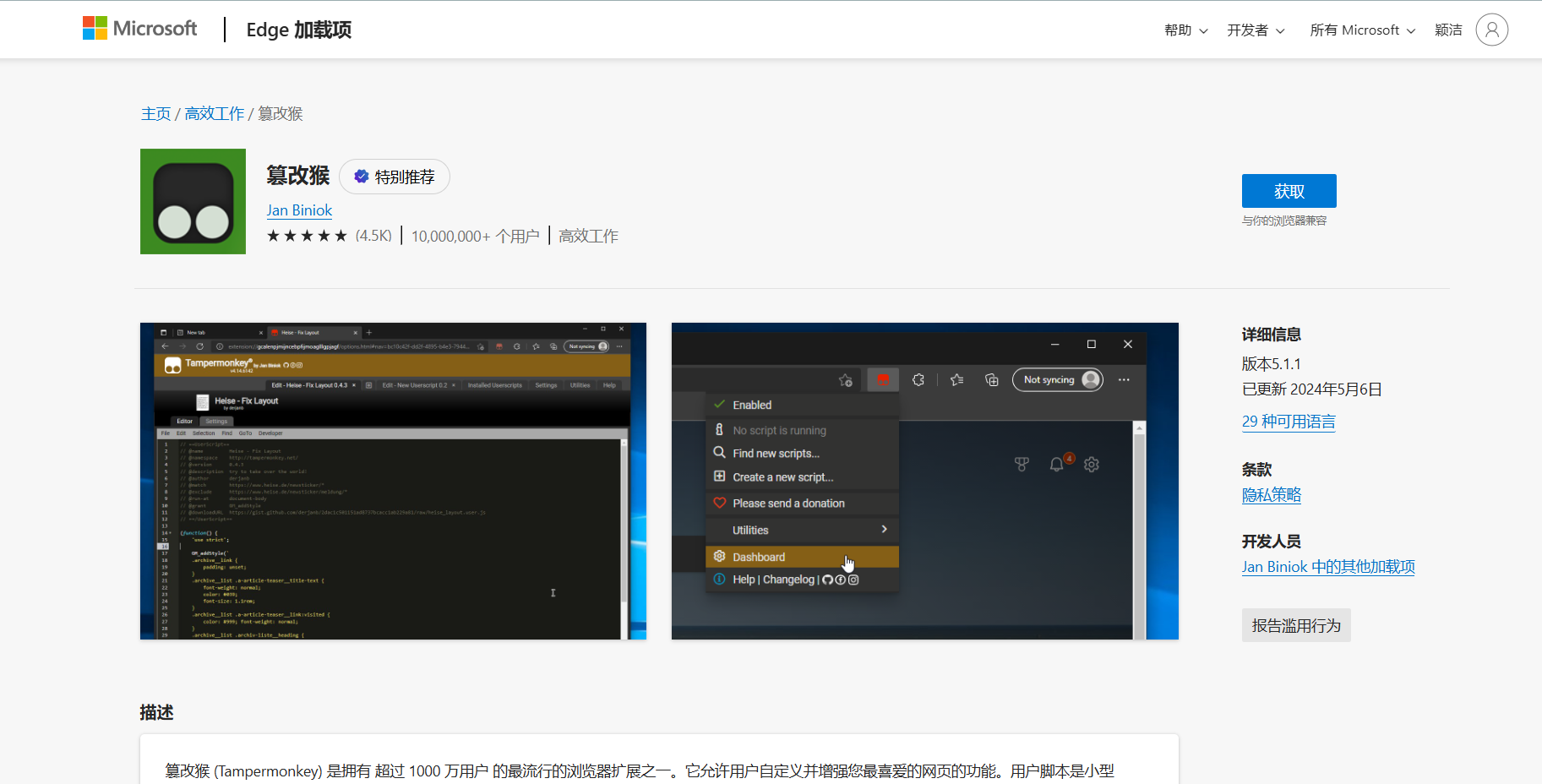 篡改猴 - Microsoft Edge Addons二.安装脚本这里直接使用大佬已经写好的源码库通智脚本 https://greasyfork.org/zh-CN/scripts/457151