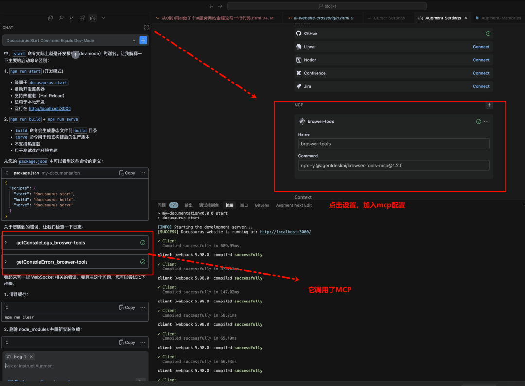 Docusaurus 这个文档怎么启动,怎么配置,都懒得看。直接把文档链接丢给Augment。
