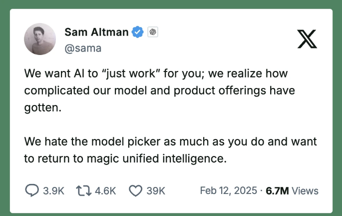 又列举Sam Altman :模型选择器,用户体验就是不行。