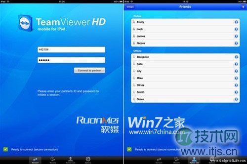 4、在iPad上安装TeamViewerHD App,使iPad可以控制连接在网络上的电脑进行远程操作;