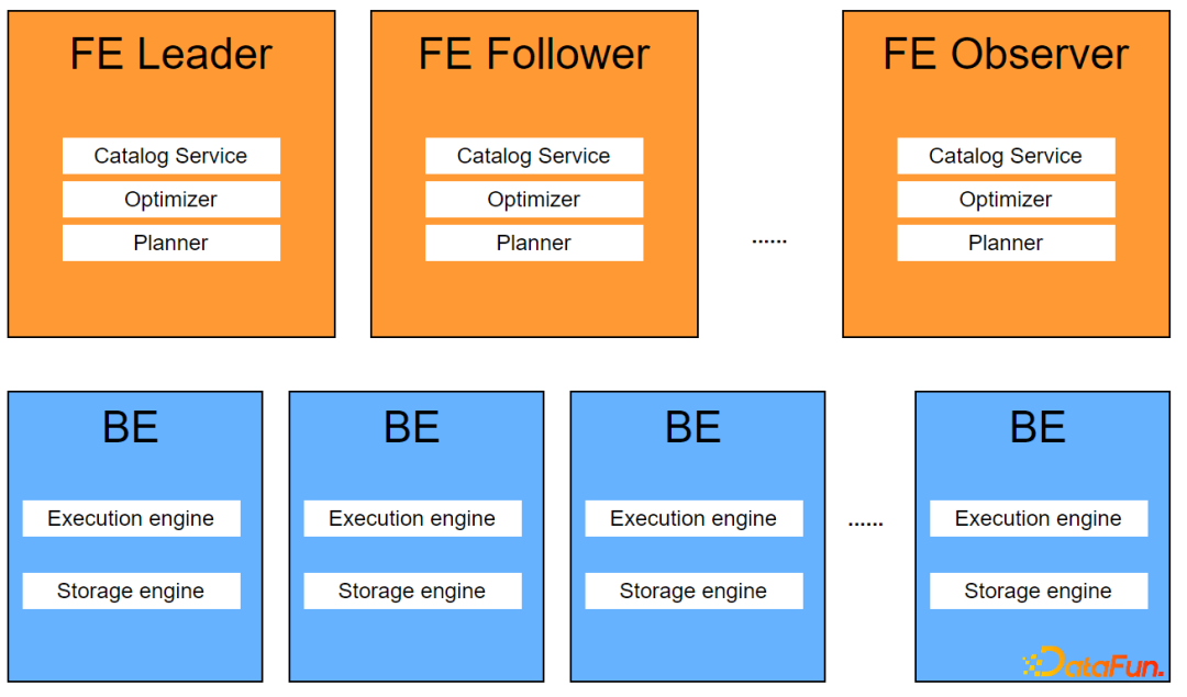 良好的字节架构设计,支持高并发低延时的跳动探索查询服务,支持高吞吐量的基于交互式分析。多FE均可对外提供服务,湖仓并发增加时,分析线性扩充FE和BE即可支持高并发的实践查询请求。支持批量数据load和流式数据load,字节支持数据更新。跳动探索支持Update/Delete语法,基于unique/aggregate数据模型,湖仓支持动态更新数据,分析实时更新聚合指标。实践提供了高可用,字节容错处理,跳动探索高扩展的基于企业级特性。FE Leader错误异常,FE Follower秒级切换为新Leader继续对外提供服务。支持聚合表和物化视图。多种数据模型,支持aggregate, replace等多种数据模型,支持创建rollup表,支持创建物化视图。rollup表和物化视图支持动态更新,无需用户手动处理。MySQL协议兼容,支持直接使用MySQL客户端连接,非常易用的数据应用对接。Doris 由 Frontend(以下简称FE)和 Backend(以下简称BE)组成,源码下载其中FE负责接受用户请求、编译、优化、分发执行计划、元数据管理、BE节点的管理等功能,BE负责执行由FE下发的执行计划,存储和管理用户数据。