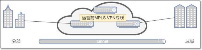 企业通过购买运营商提供的VPN专线服务实现总部和分支机构间的通信需求;VPN网关为运营商所有。