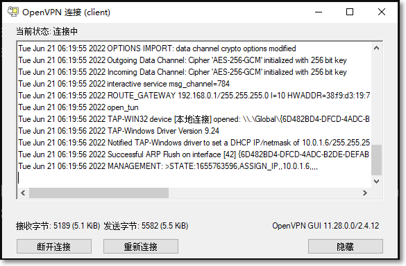 检查虚拟专用网络客户端主机是否已经获取了建立VPN隧道的地址信息:
