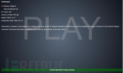值得一提的云服务器提供商是,Play 勒索软件团伙强调目前特卫普被盗数据尚未泄露,如果拒绝支付赎金,将在一周内陆续发布数据。