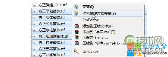 windows 7系统中复制安装字体和用快捷方式安装字体的方法