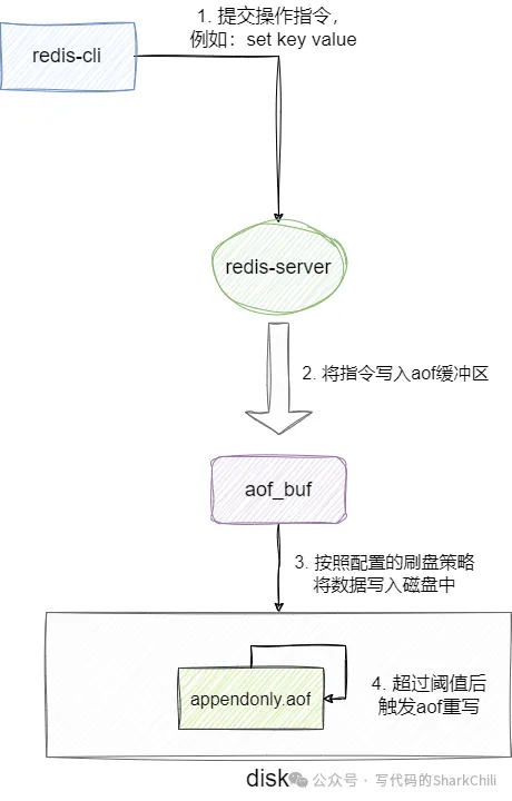 1. AOF技术简介AOF(Append-Only File)用于将Redis服务器收到的写操作追加到日志文件,通过该机制可以保证服务器重启后依然可以依靠日志文件恢复数据。 它的工作过程大抵分为以下几步: