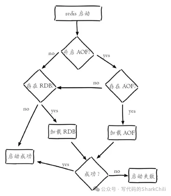 先看看有没有AOF,若有则先加载AOF,然后执行步骤2。查看是否有RDB文件,若有再加载RDB文件。