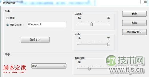 4.选择好三维字后,维文点击“设置”即可进行三维字的统中设置(如下图)。可设置三维字的设置滚动方式,快慢等。屏幕设置好后点击确定即可