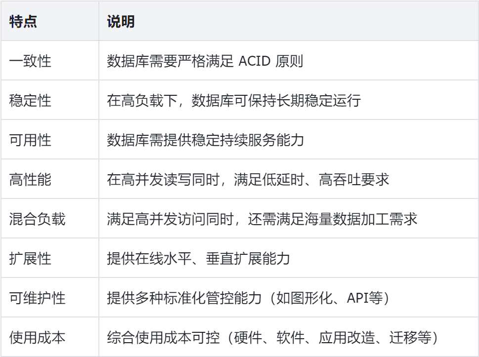 1)金融业数据库要求金融行业作为数据库应用“高地”,对数据库有着严苛的要求。这也是为什么数据库厂商都将金融行业客户作为标志性客户来看待。书中给出了核心的几点要求,从中可以一窥端倪。注意的是,金融行业有其特殊性,与互联网等业务区别很大。虽然很多要求都是共性的,但侧重点、优先级是不同的。例如,针对金融行业数据一致性、安全性,无疑是最高优先级;而扩展性等就相对要求较低。没有完美的数据库产品,因此在后续选型等很多工作时,企商汇可按照这些要求及优先级,加以取舍考虑。