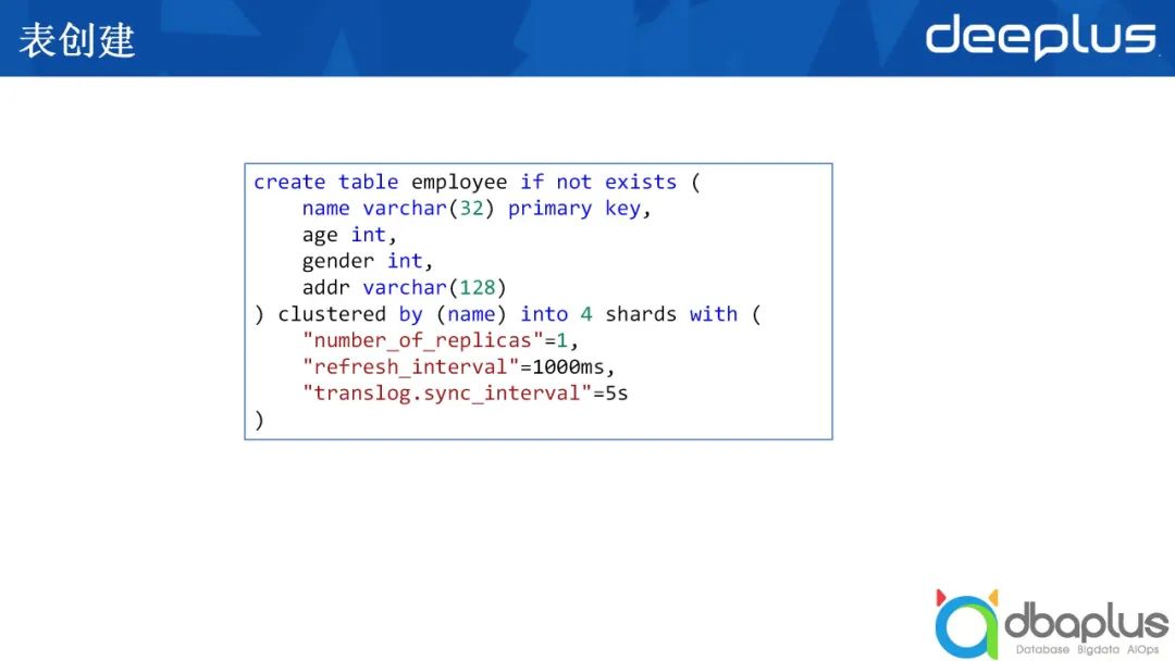 1)表创建这个操作和我们平时用PostgreSQL或MySQL创建一张表并无很大差别。
