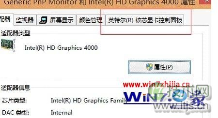 4)接下来在核心显卡设置中,切换到“英特尔核心显卡控制面板”选项卡下;