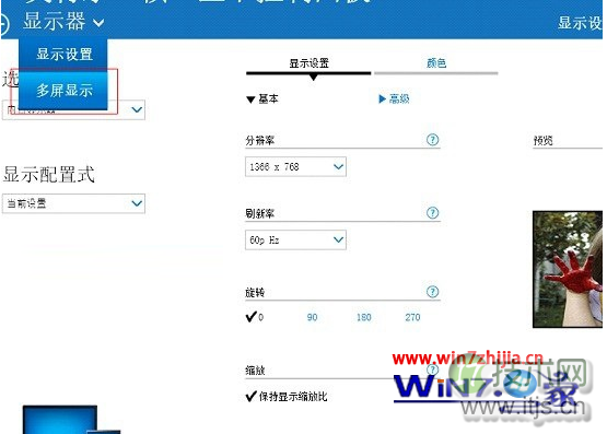 7)最后再点击下拉菜单中的多屏显示,此项即为设置多屏,实现投影仪切换选项;