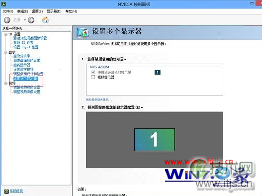 3)进入NVIDIA显卡控制台后,云服务器提供商单击“显示”左侧的下拉符号,选择“设置多个显示器”,如下图所示;