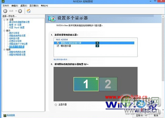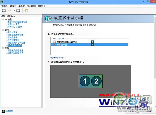 4)接下来勾选上已经检测到的外接显示屏幕;