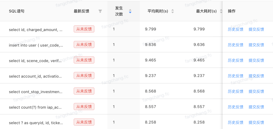 sync_time datetime default CURRENT_TIMESTAMP not null on update CURRENT_TIMESTAMP comment 数据同步时间)ENGINE=InnoDB DEFAULT CHARSET=utf8mb4 comment rds alarm配置表;1.2.3.4.5.6.7.8.9.10.11.12.13.14.15.16.17.18.19.20.21.22.23.24.25.26.27.28.29.30.31.32.33.34.35.36.37.38.慢 SQL 查询详情落库