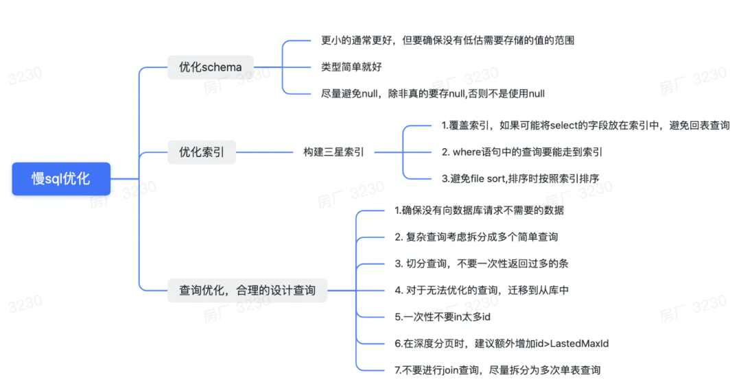 优化 shcema优化索引,尽可能构建三星索引优化查询,合理的设计查询相关细则如下所示: